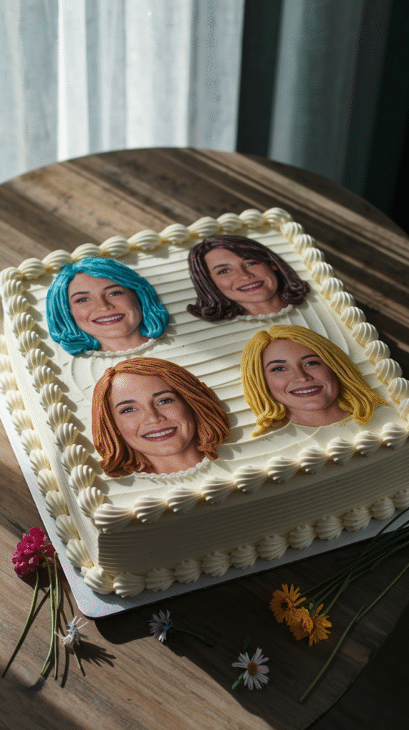 - Buttercream âframesâ around each character can make it look like a cartoon portrait wall.
