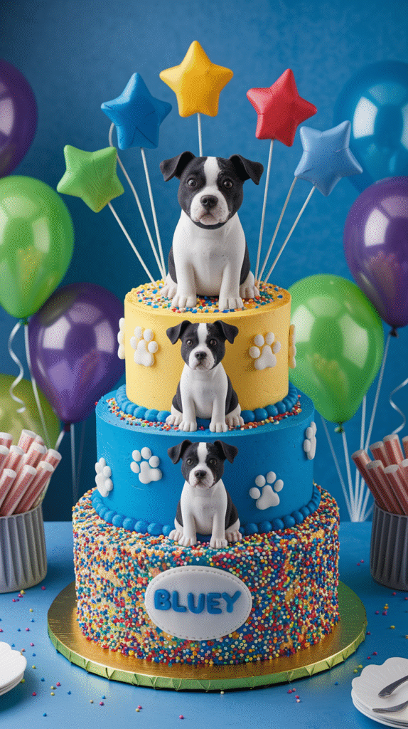 9. Over-the-Top Bluey Birthday Extravaganza Cake