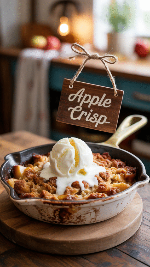 Warm apples, crunchy topping, melty ice cream—aka cozy heaven.