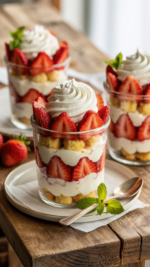 Layers of cake, cream, and strawberries in a cup? Dessert just got cute and portable.