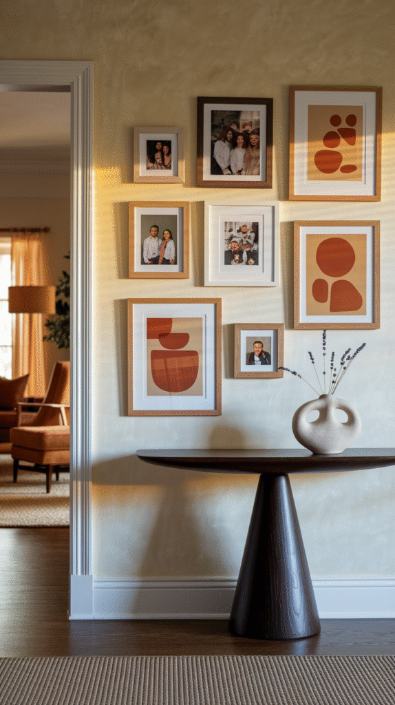 Want your entryway to feel personal instead of showroom-y? A gallery wall is the way to go. It’s the perfect spot for family photos, art prints, or even that quirky flea market piece you bought but never found a place for.