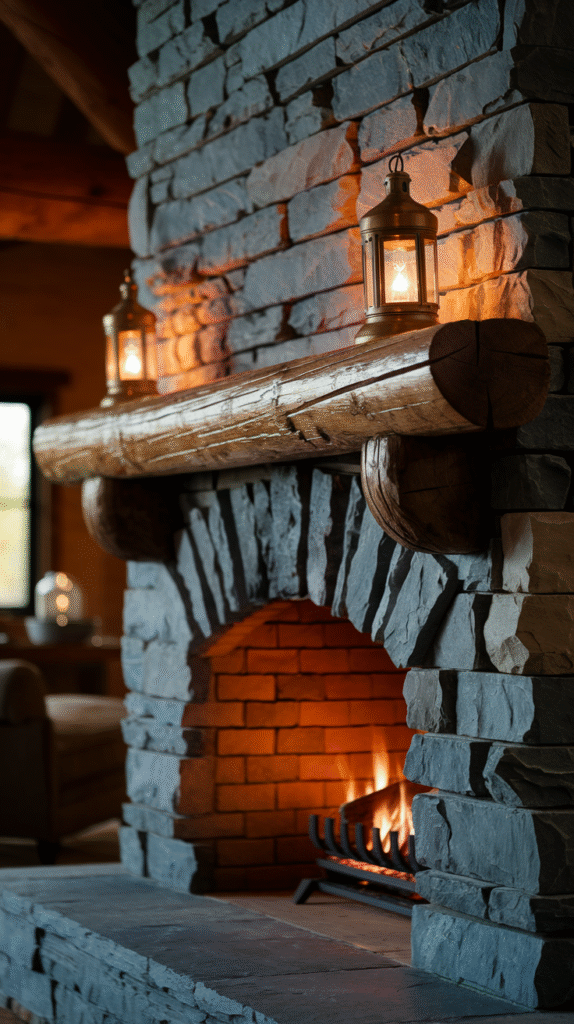 2. Rustic Stone Fireplace