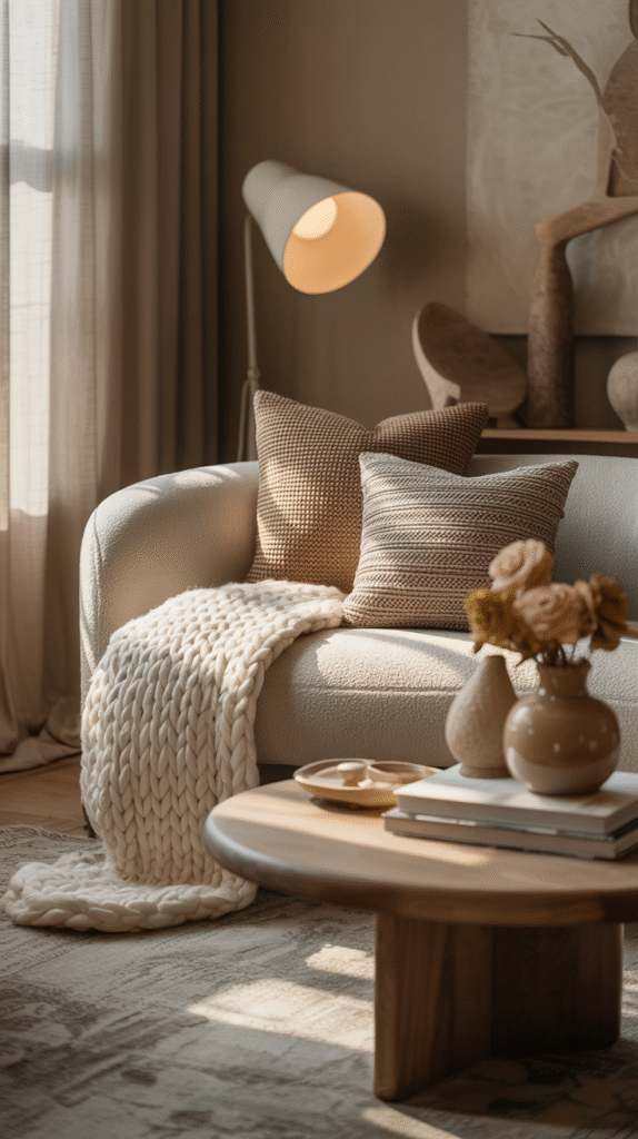 - Mix sleek furniture with warm textures (think beige walls + soft brown throws).