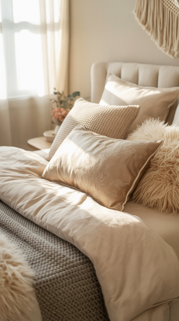 Once you pick your base colors, use them consistently — walls, bedding, decor, and accents. Cohesion = aesthetic.