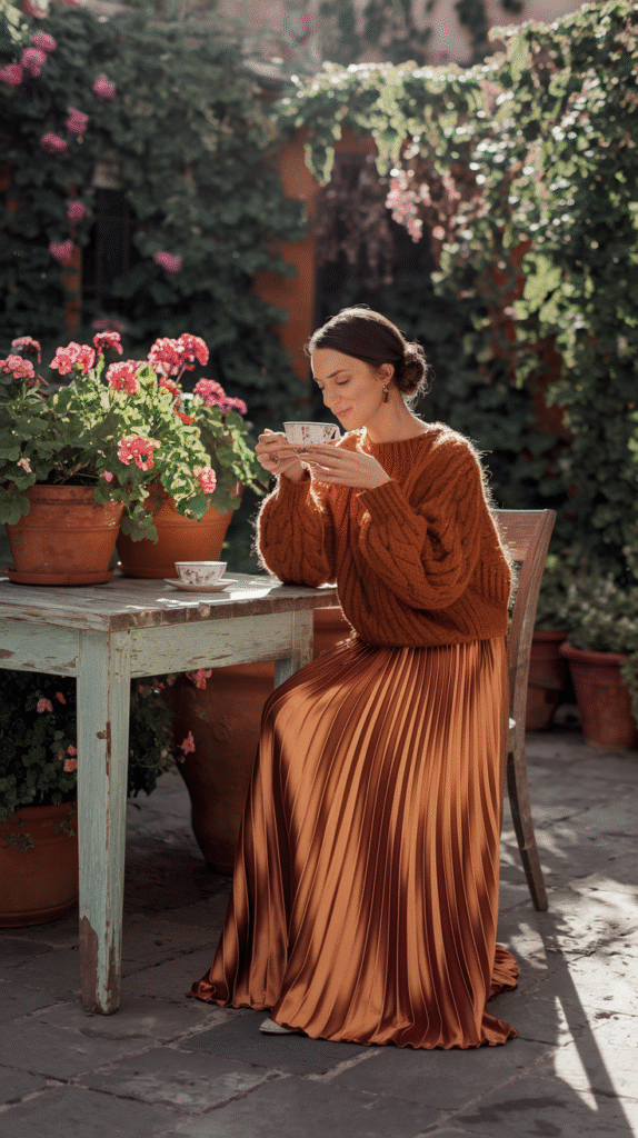 Want cozy but cute? This combo is criminally underrated. A midi skirt with a slightly oversized sweater tucked in at the front makes you look effortlessly stylish without trying too hard.