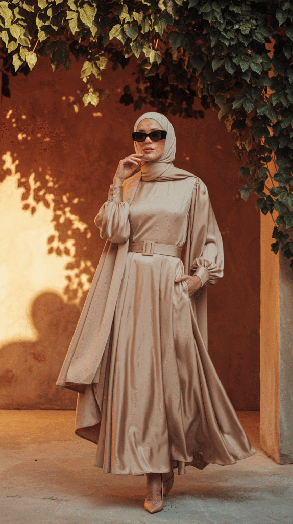 Pair with a structured handbag and slip-on flats for an instantly put-together vibe. Add a lightweight chiffon hijab, and you’re serving elegance with zero effort.